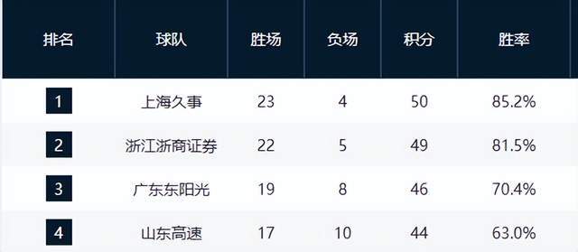 上海久事以22胜5负高居榜首,豪取八连胜,攻防效率稳居联盟第一,王哲林的内外联动已成体系,球队正朝着赛季目标稳步迈进。广厦男篮以21胜6负紧随其后,被上海队拉开一个胜场差,虽胡金秋带伤出战,但孙铭徽的组织与朱俊龙的锋线爆发力有效弥补内线压力,仅落后上海1个胜场,争冠悬念依旧保留。
