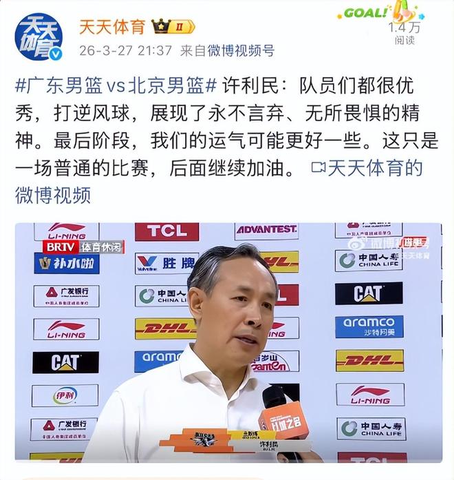 赛后许利民还杀人诛心:这场比赛队员们都很优秀打逆风球,展现了永不言弃的精神。最后阶段,我们的运气可能更好一些。