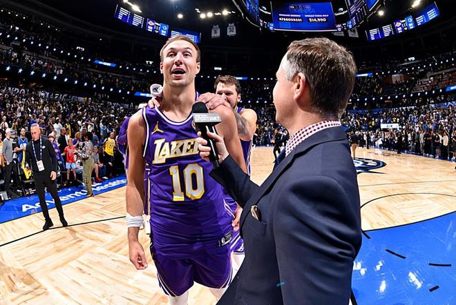 本场比赛中,最近一段时间表现不温不火的湖人后场新援卢克-肯纳德(Luke Kennard)的表现也是相当不错的。肯纳德全场出场23分钟,投篮10中7,三分线外5中4,罚球1中1,得到了19分2篮板1助攻1抢断的数据,还有1次失误和3次犯规,正负值也是达到了+20。肯纳德在本场比赛中展现出了自己全面的得分能力,他在外线投篮方面的手感也是相当不错的,他也是得到了不少分数,展现出了自己超强的得分能力和投射能力。在出手次数不多的情况下能够得到这么多的分数,也能够说明他在这方面的作用。肯纳德在本场比赛中在防守端的表现也算是中规中矩,也没有出现什么太多的问题。总体来看,肯纳德在本场比赛中算是打出了攻守兼备的表现,这也为球队的大胜做出了不小的贡献。