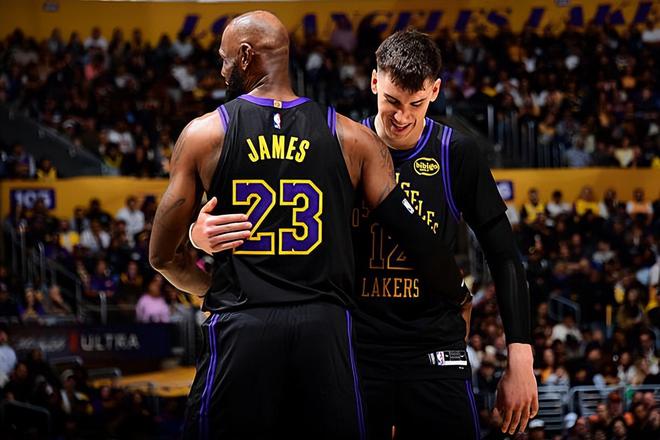 本场比赛中,湖人的先发锋线新星杰克-拉拉维亚(Jake LaRavia)的表现非常抢眼,展现出了自己全面的个人能力。拉拉维亚全场出场38分06秒,投篮5中5,三分线外2中2,罚球2中2,以100%的命中率得到了14分7篮板1抢断的数据,还有1次失误和2次犯规,正负值更是达到了全场最高的+23。拉拉维亚在进攻端展现出了全面的得分能力,他算是将自己在无球移动、篮下终结和外线投篮方面的表现都发挥了出来。不仅如此,拉拉维亚在防守端的表现也是非常抢眼的,他也是将自己的积极性和活力都发挥了出来。拉拉维亚在本场比赛中的正负值高达+23,这也能够说明他在场上时球队的局面有多出色,他也为球队的这场胜利做出了巨大的贡献。