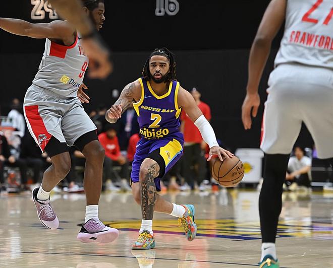 本场比赛中,虽然南湾湖人非常轻松地战胜了对手,但是球队的先发控卫RJ-戴维斯(RJ Davis)的表现还是比较一般的。戴维斯全场出场18分钟,投篮5中2,三分线外4中2,罚球1中1,得到了8分4助攻的数据,还有1次失误和3次犯规,正负值为+2。戴维斯作为球队的先发控卫在进攻端的存在感还是稍微低了一些,他的得分能力并没有发挥出来,除了投篮之外他似乎也没有什么可靠的得分方式。戴维斯具备一定的传球能力和组织能力,但是他在身材方面的劣势也是比较明显的,他也没有办法在防守端起到更大的作用。总体来看,戴维斯在本场比赛中的表现并不是特别出彩的水平,这也导致了他的出场时间并不多,看起来南湾湖人教练组对于他的表现也不太满意,其他球员的出场时间反而比他更多一些,这也能够说明一些情况。