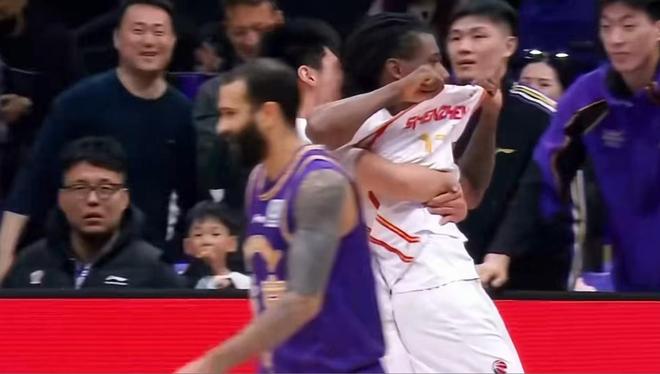 可是时勒的绝杀,还留给深圳队2.4秒进攻时间,可就是在这一闪而过的2.4秒里,史密斯上演了反绝杀,他接李慕豪的传球,在底角遭到追身防守时,他高高跃起,用漂移的三分来了一个精彩的反绝杀。而高兴的深圳队员也紧紧把史密斯抱来,进行庆祝。