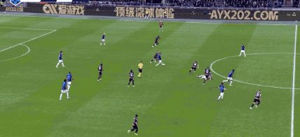 上半场补时阶段,国际米兰获得角球,巴雷拉停球并不舒服,之后的射门打偏。